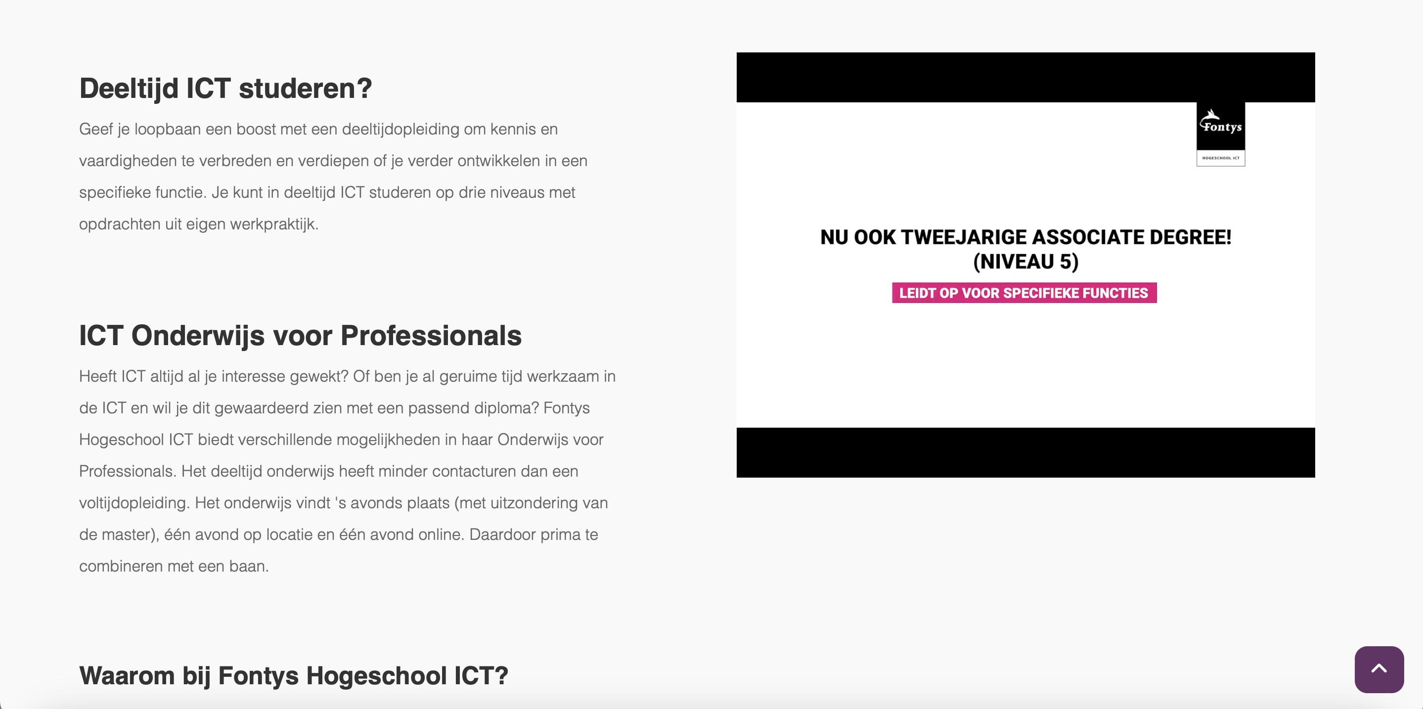 Voor deze opdracht kregen wij in een groepje de taak om de Fontys website te herontwerpen. Het doel was om meer studenten aan te trekken en hen langer op de website te laten blijven.