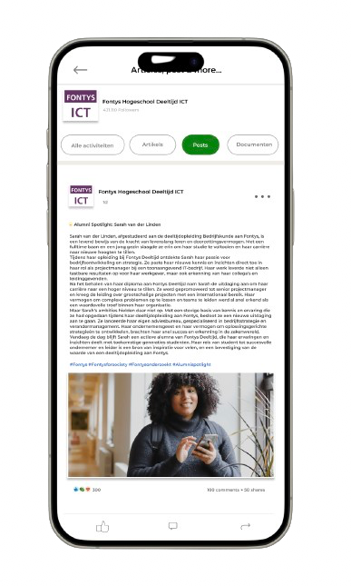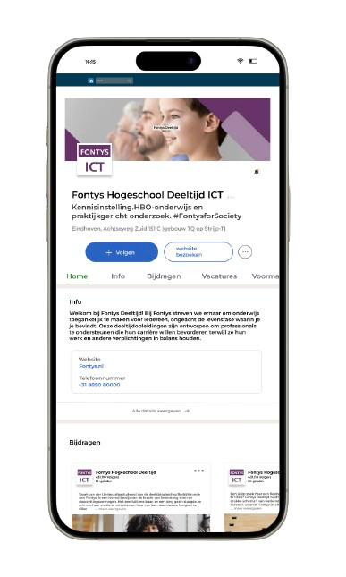 Omdat ik had opgemerkt dat Fontys al een LinkedIn-account heeft, maar dat de informatie en content niet relevant zijn voor deeltijdstudenten, heb ik besloten om een LinkedIn-account speciaal voor deeltijdstudenten te ontwerpen. Vervolgens heb ik onderzocht welke content geschikt zou zijn voor OVP-studenten en ben ik met verschillende ideeën gekomen om meer studenten aan te trekken. De gekozen posts zijn: